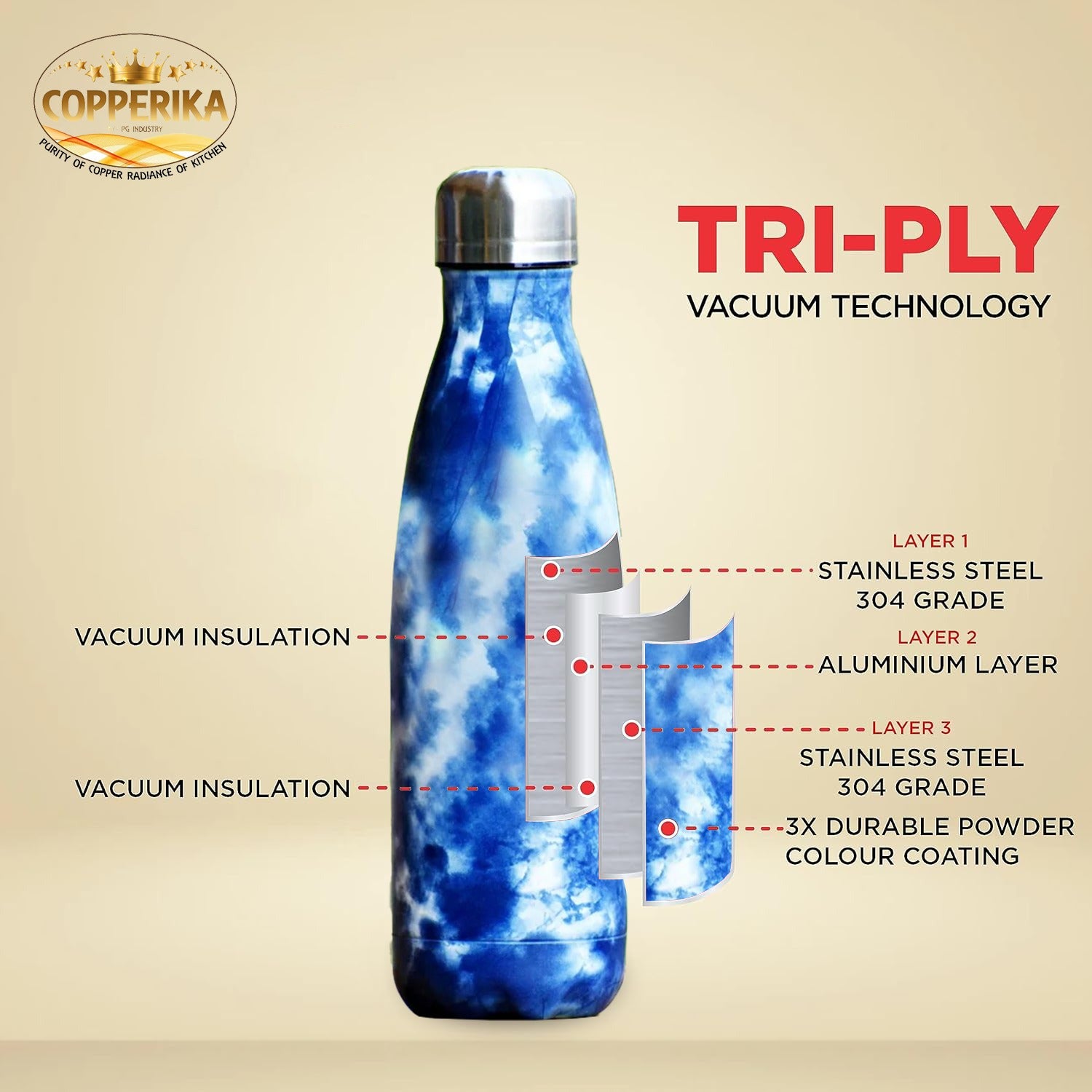 Copperika Premium Doubled Wall 304 Stainless Steel 500 ml | Blue Color| Thermosteel Bottle| | Stays Hot for 18 Hrs & Cold for 24 Hrs | Rustproof & Leakproof |for Home,Office,Camping,Travel, Gym,School