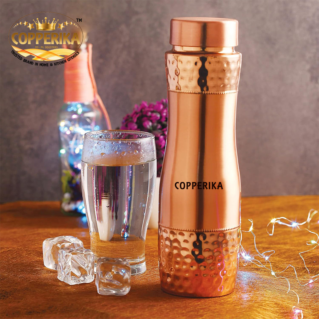 Copperika Premium Gift Set Pure Copper Water Bottle 1000ml + Copper Glass (Pack of 2-300ml Each) Original Heavy Build |BPA Free With Ayurvedic & Other Health Benefits For Home, Office, & Travel